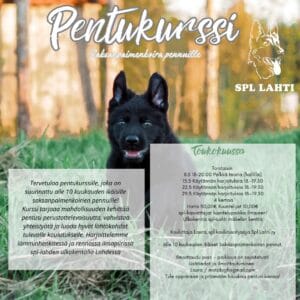 Toukokuussa kentällä pentukurssi. Teoria ja käytäntö. Tarkemmat aikataulut kevään aikana. Ensisijaisesti saksanpaimenkoirille.